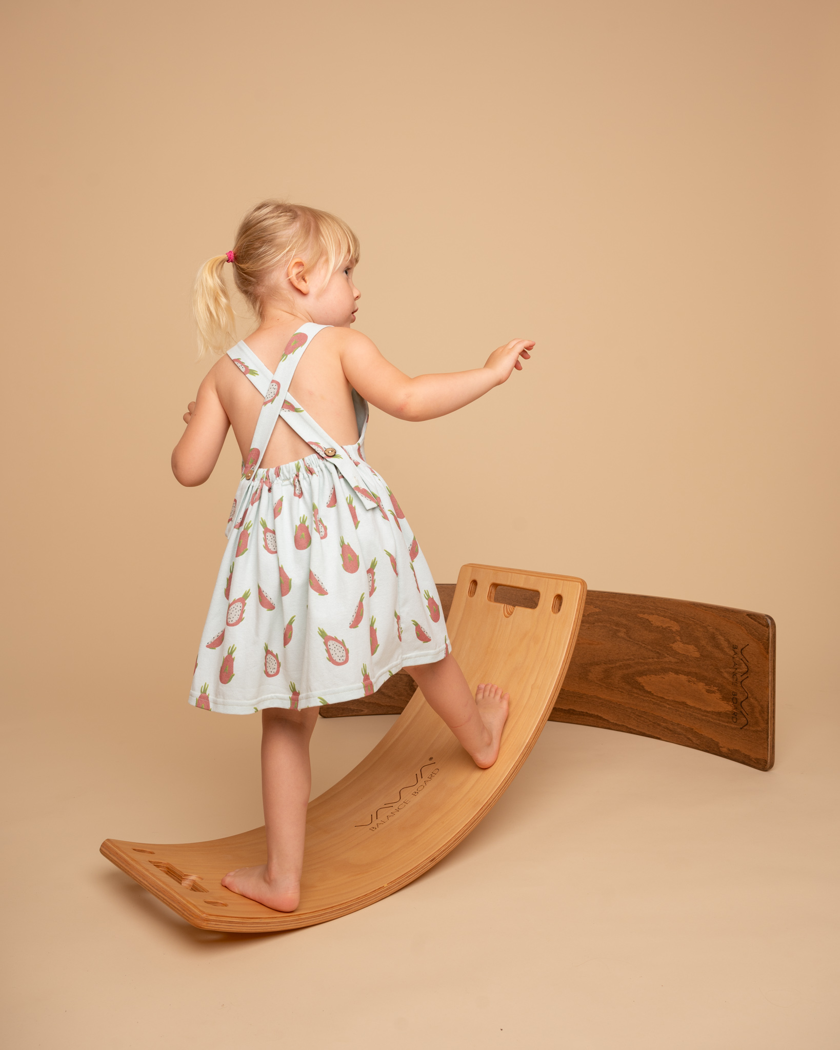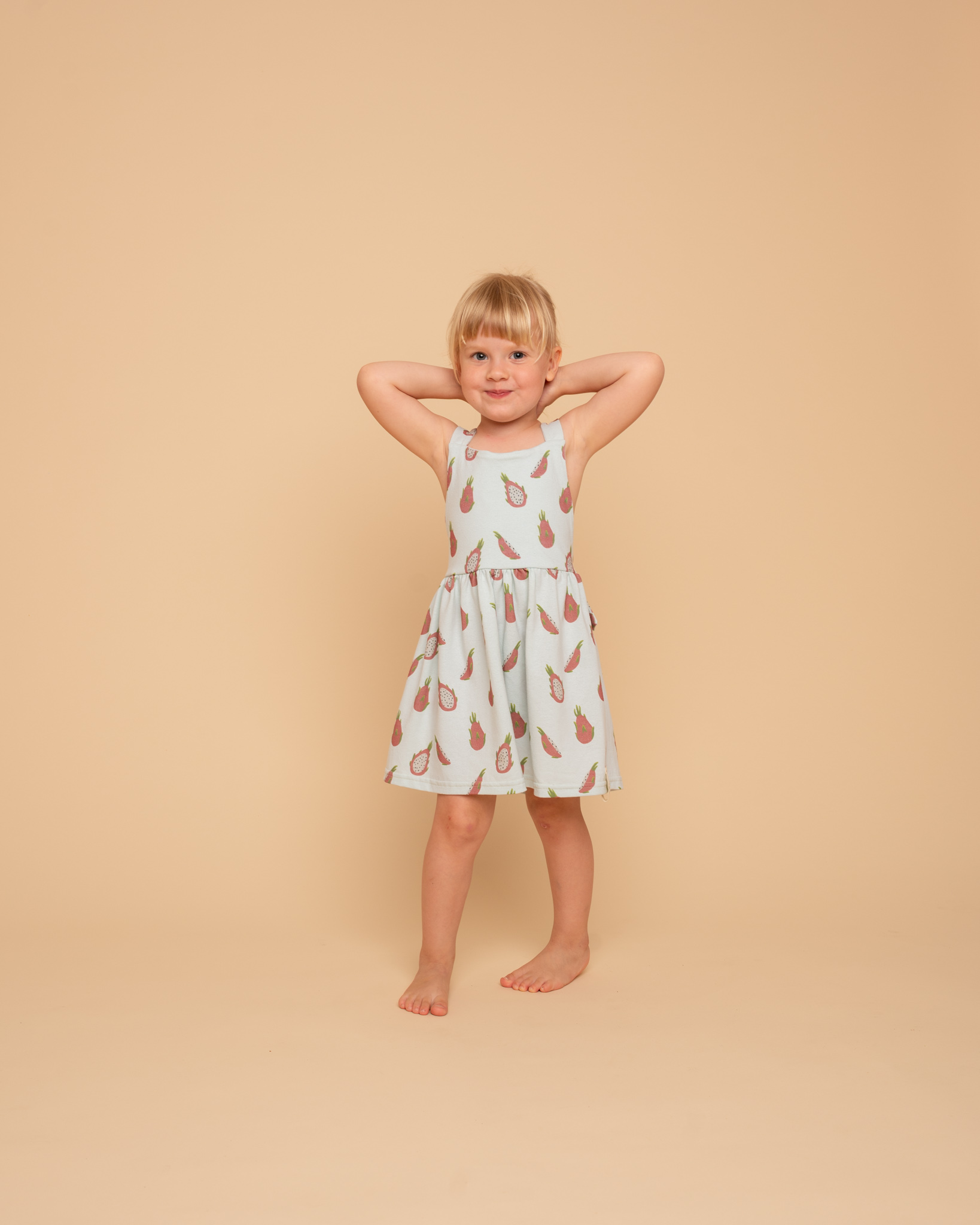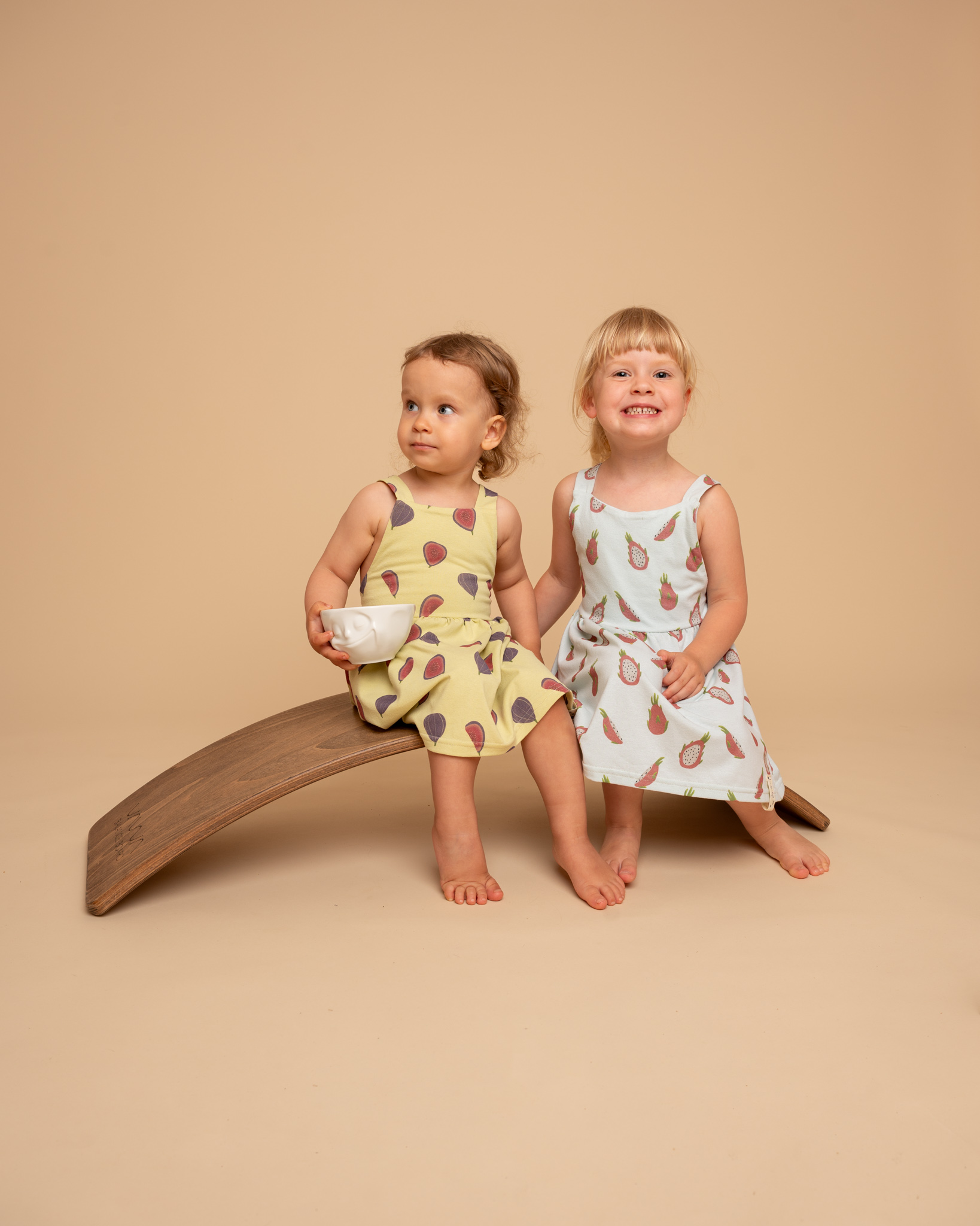 Dievčatká + leto = šaty…a nie len tak hocijaké 🙂 Holý chrbát v lete poteší a v chladnejšie dni ich môžete doplniť tričkom či dokonca aj legínami. Takto získaš kúsok, ktorý môže nosiť po celý rok 🙂 Traky majú 2 rady dierok, aby sa šaty dokonale prispôsobili a mohli rásť s vašimi princeznami. Šatičky sú vyrobené z recyklovaných materiálov, ktoré ušetrili množstvo vody, CO2 a energií.
