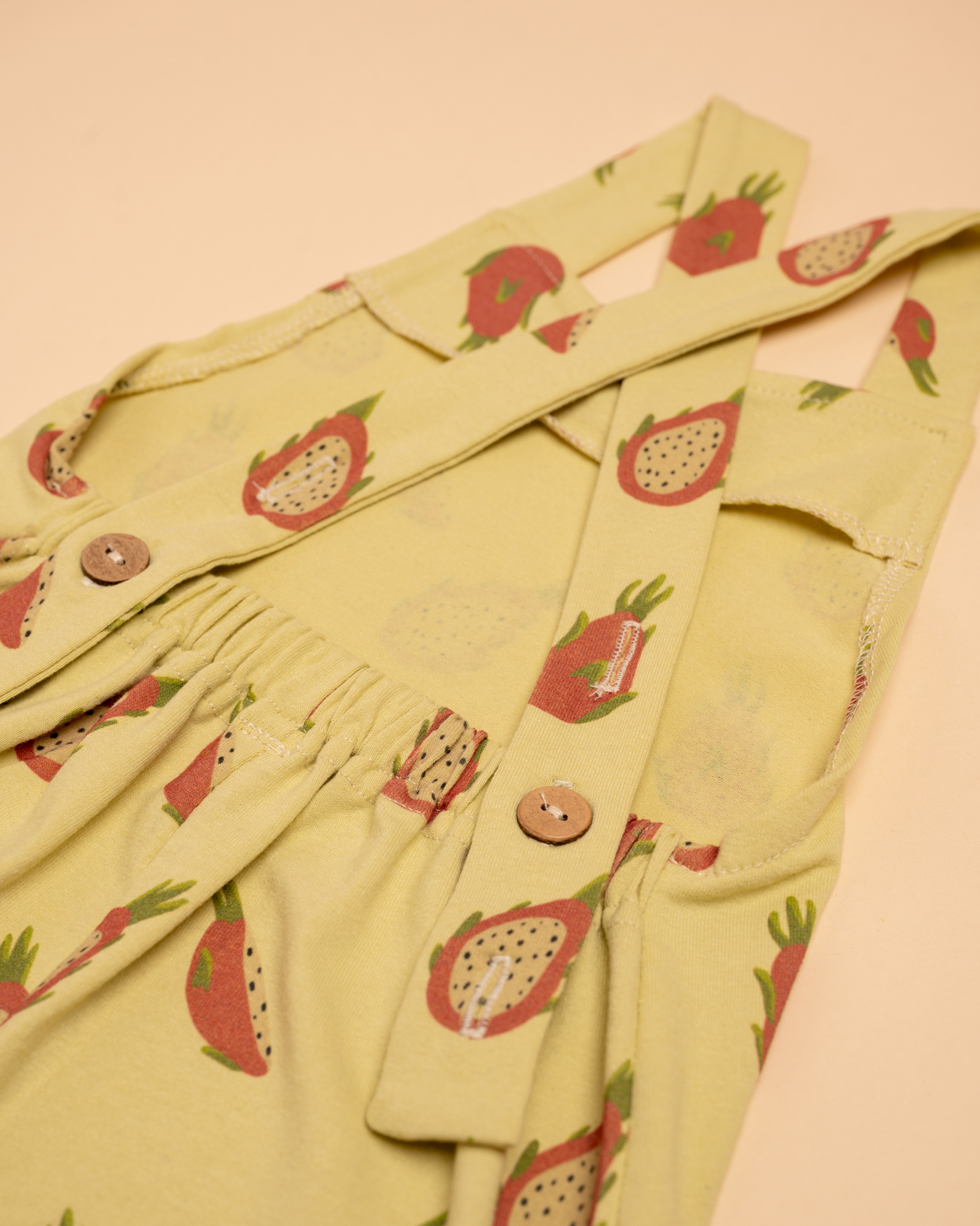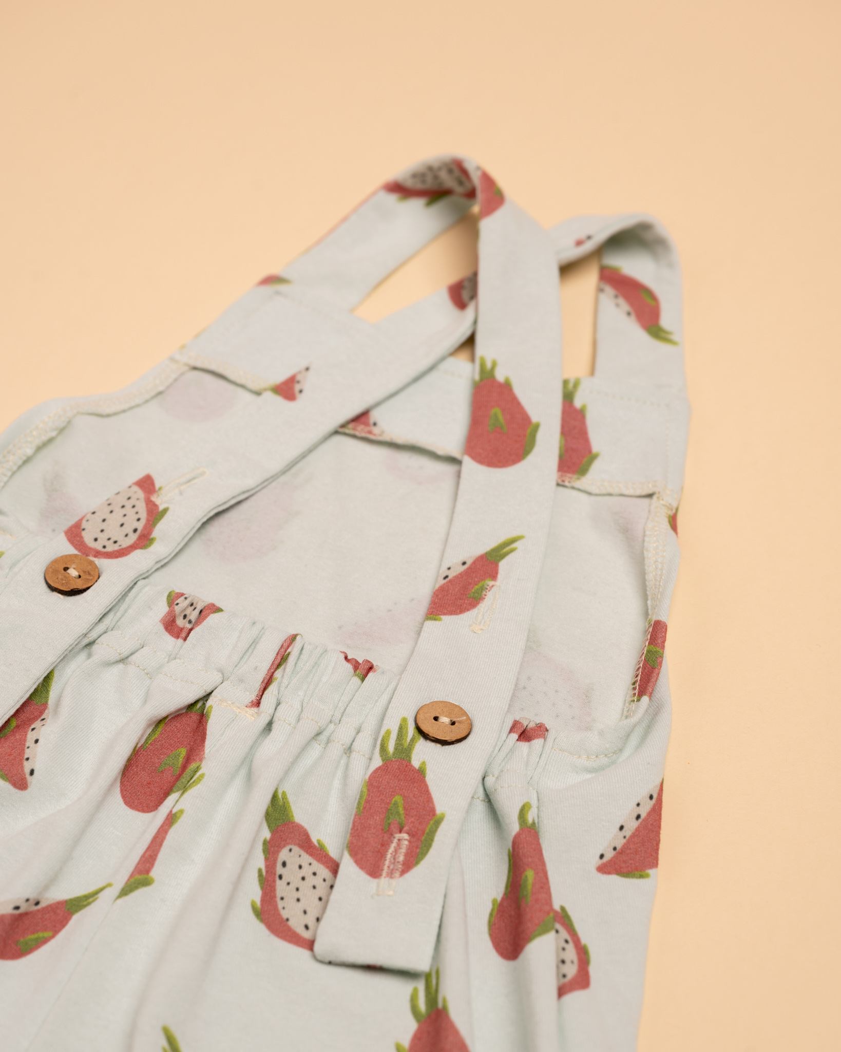 Naše stálice trakáče sme trochu vylepšili, ušili zo skvelého materiálu z recyklovaných priadzí a doplnili o autorskú šťavnatú potlač broskyne, figy a pitahaye. Holý chrbátik v lete veľmi poteší, no a v chladnejšie dni trakáče doplníš tričkom a je to 🙂 Traky majú až 3 rady dierok, aby sa dokonale prispôsobili a mohli rásť s vašimi deťmi.