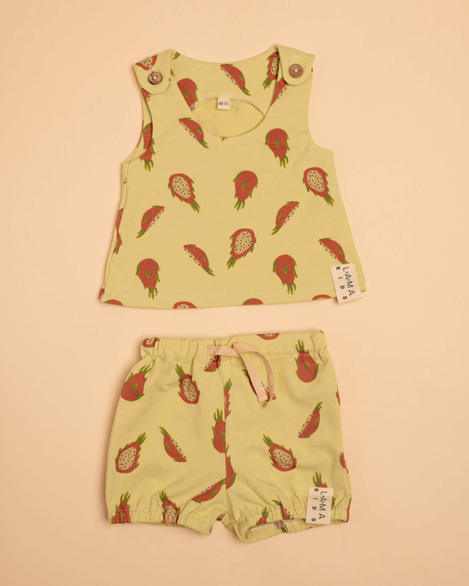Pri novej kolekcii sme mysleli aj na tých najmenších. Set obsahuje tielko a kraťasky, ktoré dokonale sadnú. Tielko je doplnené o gombíky pre pohodlné obliekanie, pretože veľmi dobre vieme, že pre deti nič otravnejšie neexistuje, že? Tromfne to už len výmena plienky 😀 Set je ušitý z recyklovaných materiálov, kde sa pri výrobe tejto látky spotrebovalo niekoľko násobne menej vody, CO2 a energií ako pri konvenčných materiáloch. Kolekcia JUICY je svieža, šťavnatá, hravá a naša autorská potlač to úplne definuje. Stačí si už len vybrať. 🙂