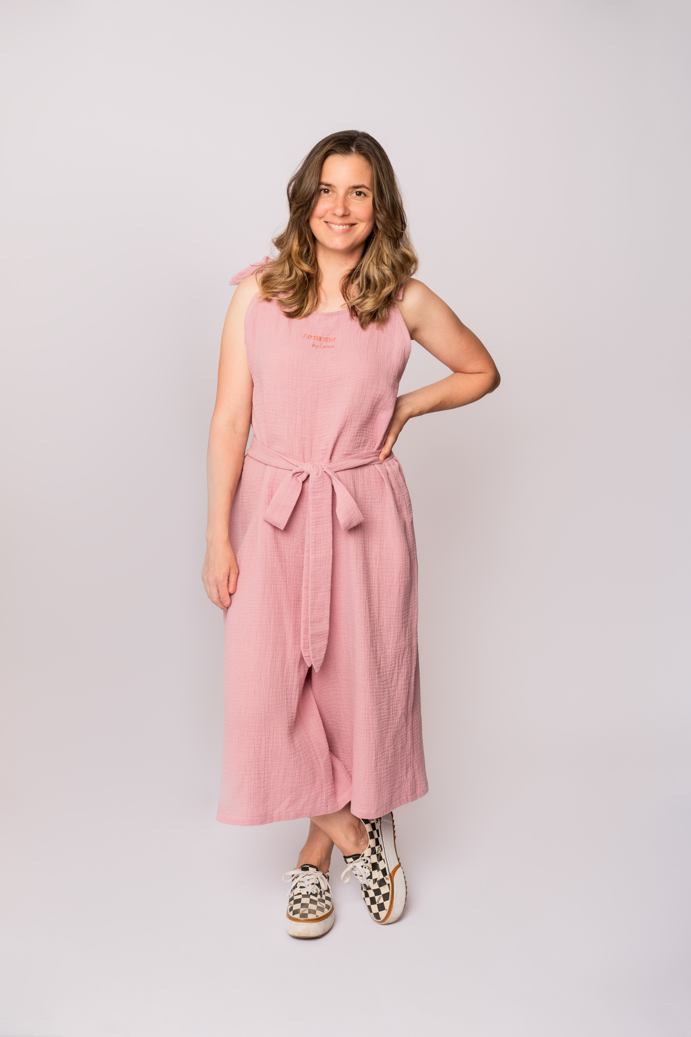 Náš a hlavne váš obľúbený kúsok z minulého roka sme zaradili aj do tohtoročnej kolekcie FEMME by Lama. Strih sme mierne upravili a ramienka prerobili na viazačku, aby si ho vedela prispôsobiť každá z vás. Ide o univerzálnu veľkosť. Je strihaný z celej šírky látky a v páse sa sťahuje opaskom. Doplnený o výšivku na hrudi. Mušelín je veľmi príjemný a vzdušný materiál na leto a samozrejme je to organická bavlna s certifikátom GOTS. 🙂