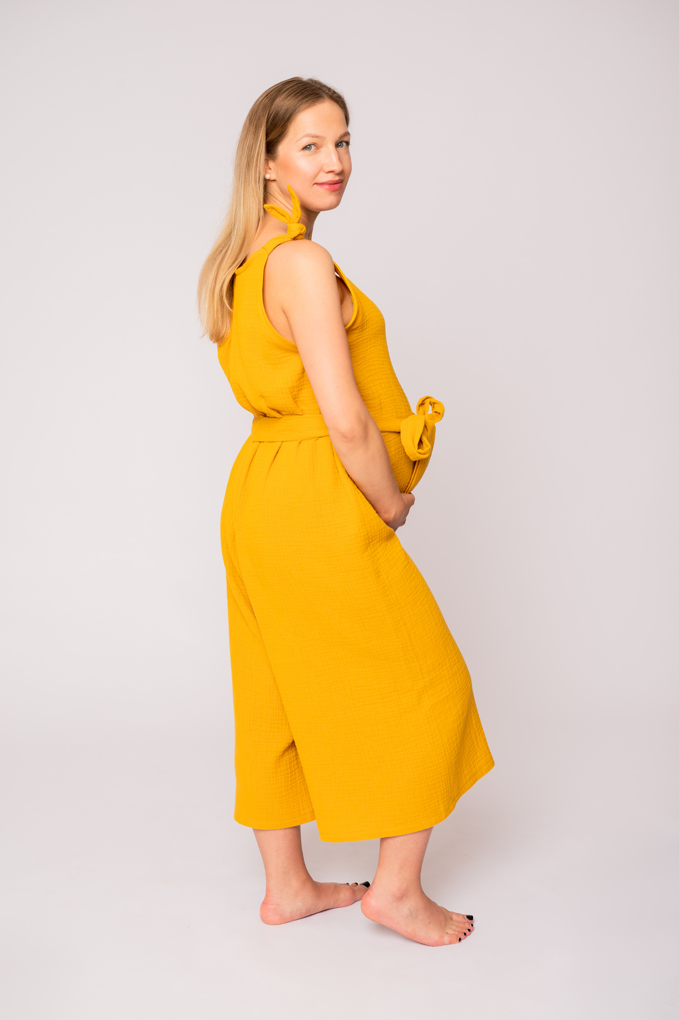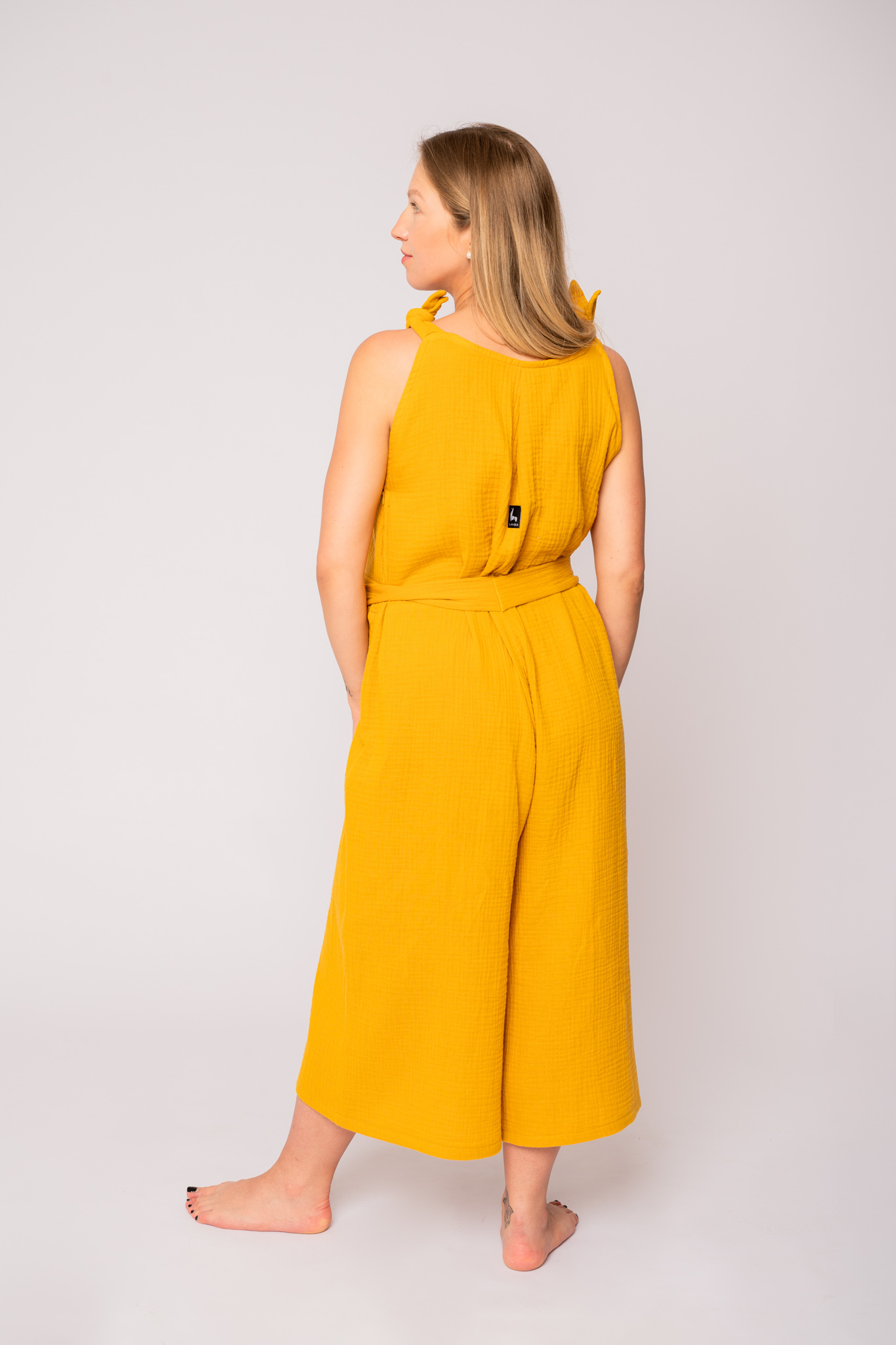Náš a hlavne váš obľúbený kúsok z minulého roka sme zaradili aj do tohtoročnej kolekcie FEMME by Lama. Strih sme mierne upravili a ramienka prerobili na viazačku, aby si ho vedela prispôsobiť každá z vás. Ide o univerzálnu veľkosť. Je strihaný z celej šírky látky a v páse sa sťahuje opaskom. Doplnený o výšivku na hrudi. Mušelín je veľmi príjemný a vzdušný materiál na leto a samozrejme je to organická bavlna s certifikátom GOTS. 🙂